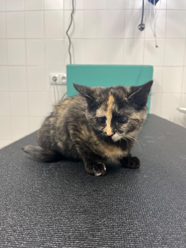 Malé kotě nalezené v ul. Byla ve špatné zdravotním stavu, ale již je vše v pořádku a odcestovala do dočasné péče.
