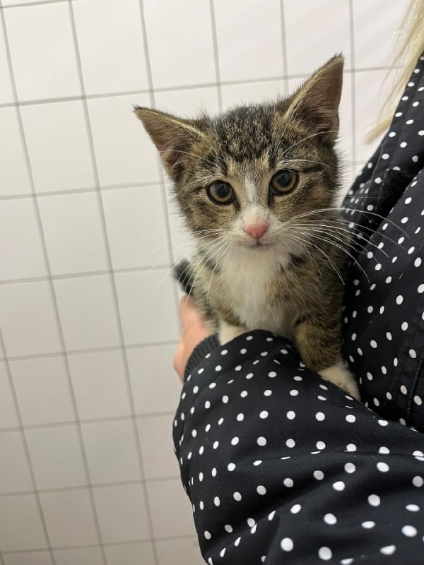 Malé kotě nalezené v ul. Vrchlického. Nalezena byla společně s Alinou a Emanem. Nehledá je někdo?