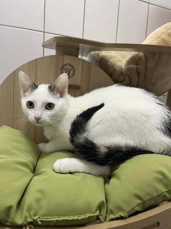 Malý kocourek byl nalezený zraněný v ul. Na Biřičce. Na lidskou společnost si zatím zvyká.